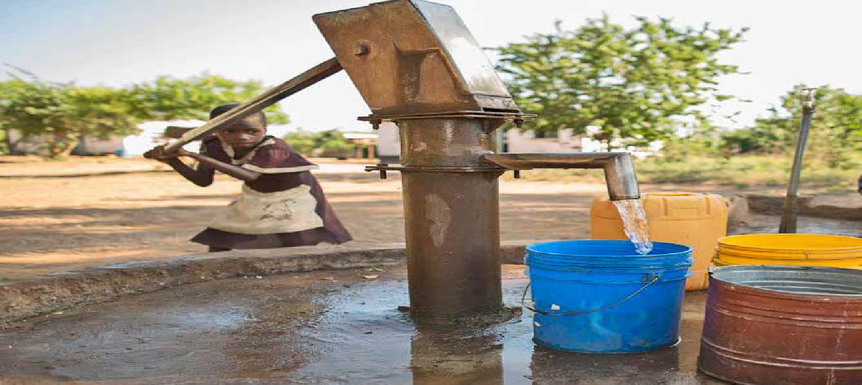 Thirty-five percent of people have no access to safe drinking water. Boreholes are few, and many people walk long distances to collect water from shallow wells that are contaminated by animals, and often dry up during droughts. Collecting water from rivers places people at significant risk of crocodile attacks